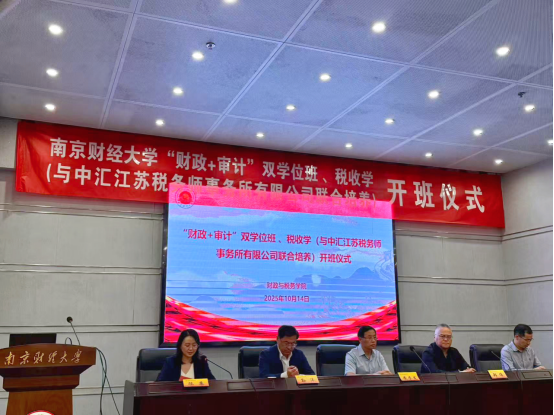 “财政+审计”双学位班、税收学(与中汇江苏税务师事务所联合培养)启动仪式举行 “财政+审计”双学位班、税收学(与中汇江苏税务师事务所有限公司联合培养)启动仪式 校领导为校内导师、行业导师代表颁发聘书税...