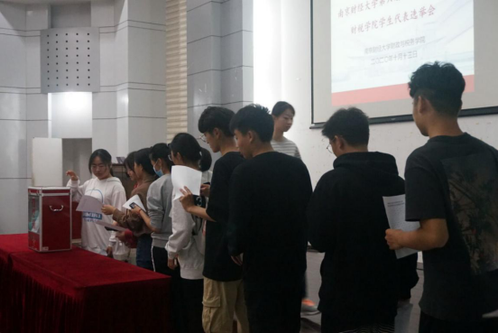 院学生会轮值主席曾丽娟同学发言,她向在场同学介绍了第六次学代会的前期筹备内容、学生代表的职责及我院学生会对此次学代会的推进情况。随后,由各班级推选的15名学生代表依次上台演讲,他们落落大方、充满自信,表达了自己渴望成为学生代表的激情和决心。随后学生代表依次投票,最终产生12名候选代表,他们将代表我院参与伟德国际1946bv第六次学生代表大会。