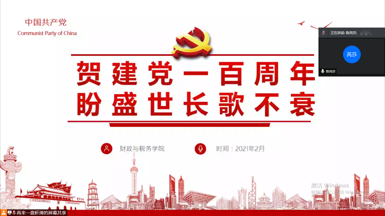2021年是中国共产党成立一百周年,为继承和发扬光荣传统,财政与税务学院各年级在2月8日分别通过“腾讯会议”召开“建党一百周年”系列主题班会,班会由各年级辅导员分别主持,学院全体学生参与。