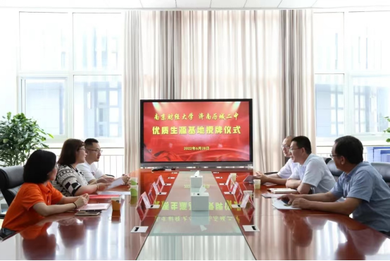 6月27日下午和28日上午,我校分别在山东省济南市济钢高级中学、济南实验高级中学(济钢高中兴隆校区)、济南一中和济南历城二中建立优质生源基地并举行签约仪式。财政与税务学院党委副书记李慕原,青年教师战略博士、李亚婧博士代表学校来到四所中学参与座谈并开展招生宣传。四校相关校领导出席“优质生源基地”签约仪式。