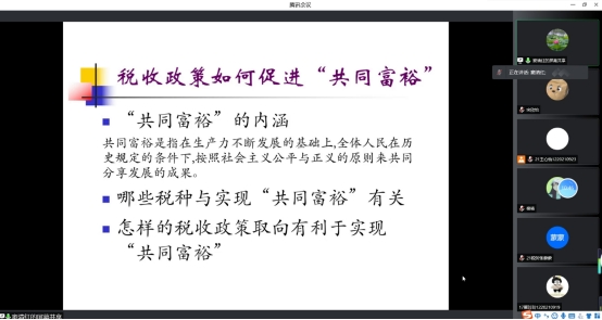 窦清红博士将讲座分为税收热点问题和税收论文的写作两部分进行。讲座的第一部分,窦博士就社会关注的主要热点税收问题进行了系统而深刻的分析阐述,从宏观层面来看,税收政策应如何促进社会共同富裕、如何助力高质量发展、如何促进双碳目标的实现等;就具体税种而言,增值税、消费税和个人所得税等应如何进一步改革优化,以充分发挥其职能作用。