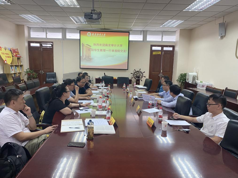 6月29日上午,南京审计大学经济学院财政系主任欧阳华生教授、王萌教授、曾宪影副教授、孙莉副教授、吴凯副教授、李丹博士、陈欢博士一行7人来我院调研、交流研讨,研讨在德经楼408会议室举行。本次交流主要围绕伟德国际1946bvbevitor伟德国际1946税务专业硕士基本情况、培养方案、就业方向、人才培养经验等进行调研、学习。我院院长朱军、副院长田志刚、副教授苏建、青年博士刘啟明、辅导员朱思颖等参加了本次经验分享和交流会。