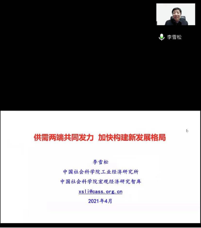 4月8日晚上7点,应我院、公共财政研究中心的邀请,中国社会科学院工业经济研究所党委书记、副所长、中国社会科学院大学博士生导师李雪松教授通过腾讯会议作了题为“供需两端共同发力,加快构建新发展格局”的线上学术报告。我院院长、公共财政研究中心主任朱军教授主持了本次讲座,学院部分教师和全体硕士研究生参加了学术报告。
