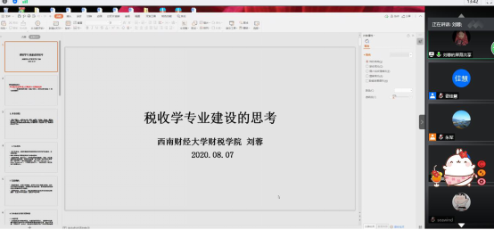 西南财经大学财政税务学院院长刘蓉教授做了题为“税收学专业建设与精英人才培养经验”的专题讲座,刘教授首先从专业定位和专业特色方面介绍了西南财经大学税收学所取得的主要成绩;随后,详细分享了税收学专业建设中的改革举措,具体包括:第一,专业综合改革的举要举措,构建分层分类培养模式、构建三维创新协同育人平台;第二,师资队伍建设主要举措,引育并举、构建复合型教师团队,分类推进、提升教师教学能力,校企融通、内外联合、多方协同推进基层教学组织建设;第三,加强专业教学质量保障体系建设的主要举措,基于国标完善质量标准、完善六位一体多维监控机制、完善绩效考评机制;第四,重视毕业生培养质量的跟踪调查结果和外部评价,构建校内跟踪、第三方机构跟踪、毕业校友跟踪。最后,刘教授探讨了关于下一步推进专业建设和改革的主要思路。