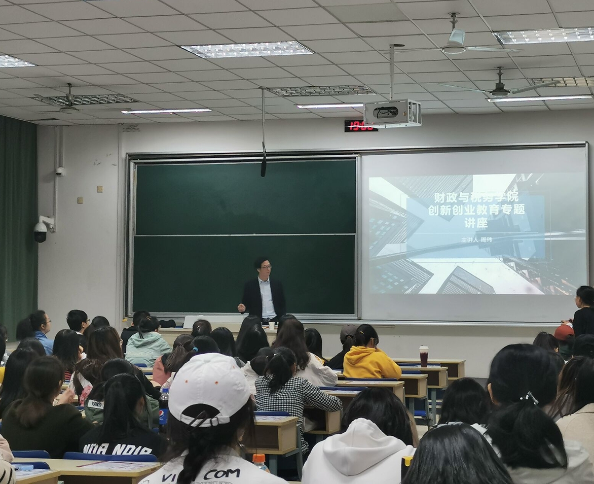 11月12日晚,应财税学院邀请,南京师范大学大学生创新创业中心主任周玮教授作了题为“创新创业对大学生涯的意义和作用”的专题讲座。讲座在仙林校区德经楼103教室举行,学院2019级学生参加了讲座,讲座由院党委副书记李慕原主持。