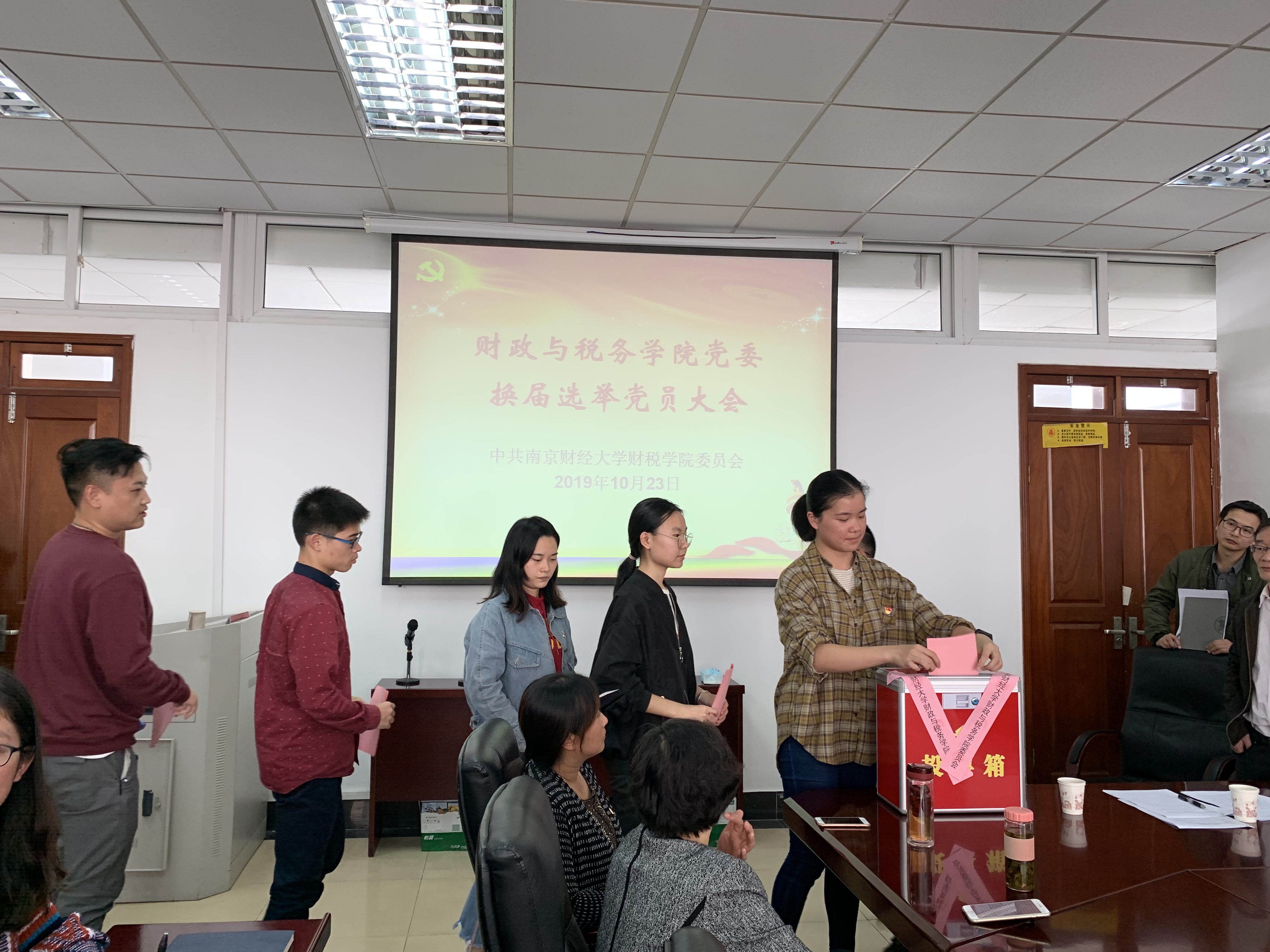10月23日,我院党委换届选举大会在德经楼408会议室顺利举行,校党委派出指导组成员丁书俊、陈夏两位同志莅临大会指导工作,学院全体党员师生参加大会。