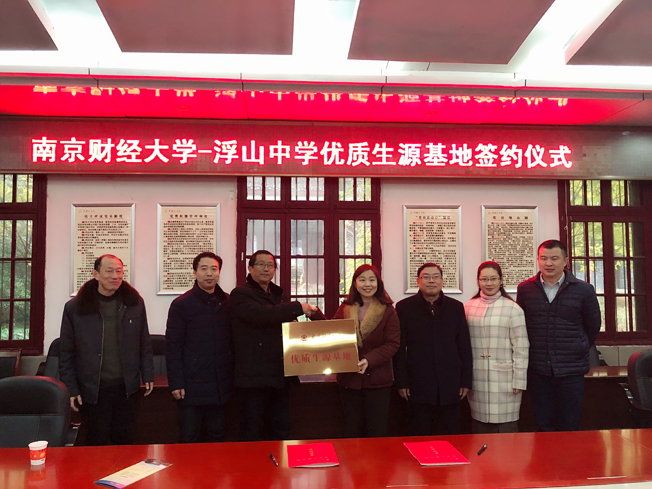 12月20日,我校在安徽省浮山中学建立优质生源基地并举行签约授牌仪式。浮山中学校长唐晓发,书记王友明,副校长胡章友,教务主任杨俊兵,办公室主任吴强,我校学生处副处长、招生办公室主任孙菲,招生办公室副主任张亦佳,财税学院唐祥来教授,院党委副书记李慕原,院学工办主任全真真等参加了签约授牌仪式。
