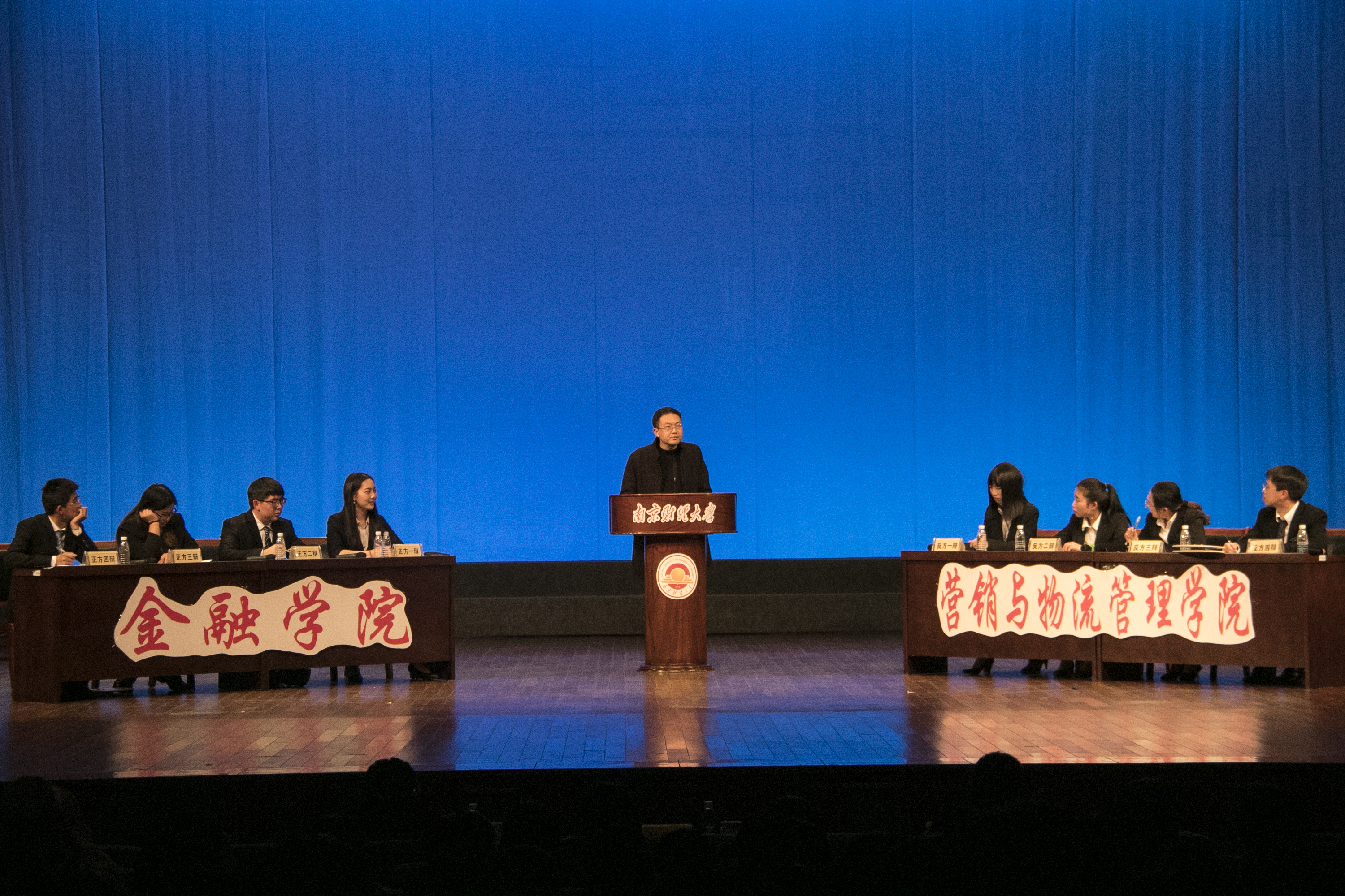 11月27日晚,由党委宣传部、团委、bevitor伟德国际1946共同主办,大学生辩论与演讲协会承办的“庆祝改革开放四十周年,青春与改革同行”伟德国际1946bv第十六届校园辩论赛决赛在大学生活动中心精彩上演。南京大学新闻传播学院博士生导师、南京大学校辩论队教练胡翼青,省希望办主任、江苏省青少年发展基金会秘书长、江苏省《风流一代》杂志社社长兼主编薛保刚,南京师范大学党委宣传部兼党委教师工作部副部长郭亮担任比赛评委。同时来到现场的还有校团委、党委宣传部、学生处、财税学院等部门的领导,以及南京师范大学、南京邮电大学、南京农业大学、南京中医药大学的辩论队代表和各学院的师生,现场座无虚席。
