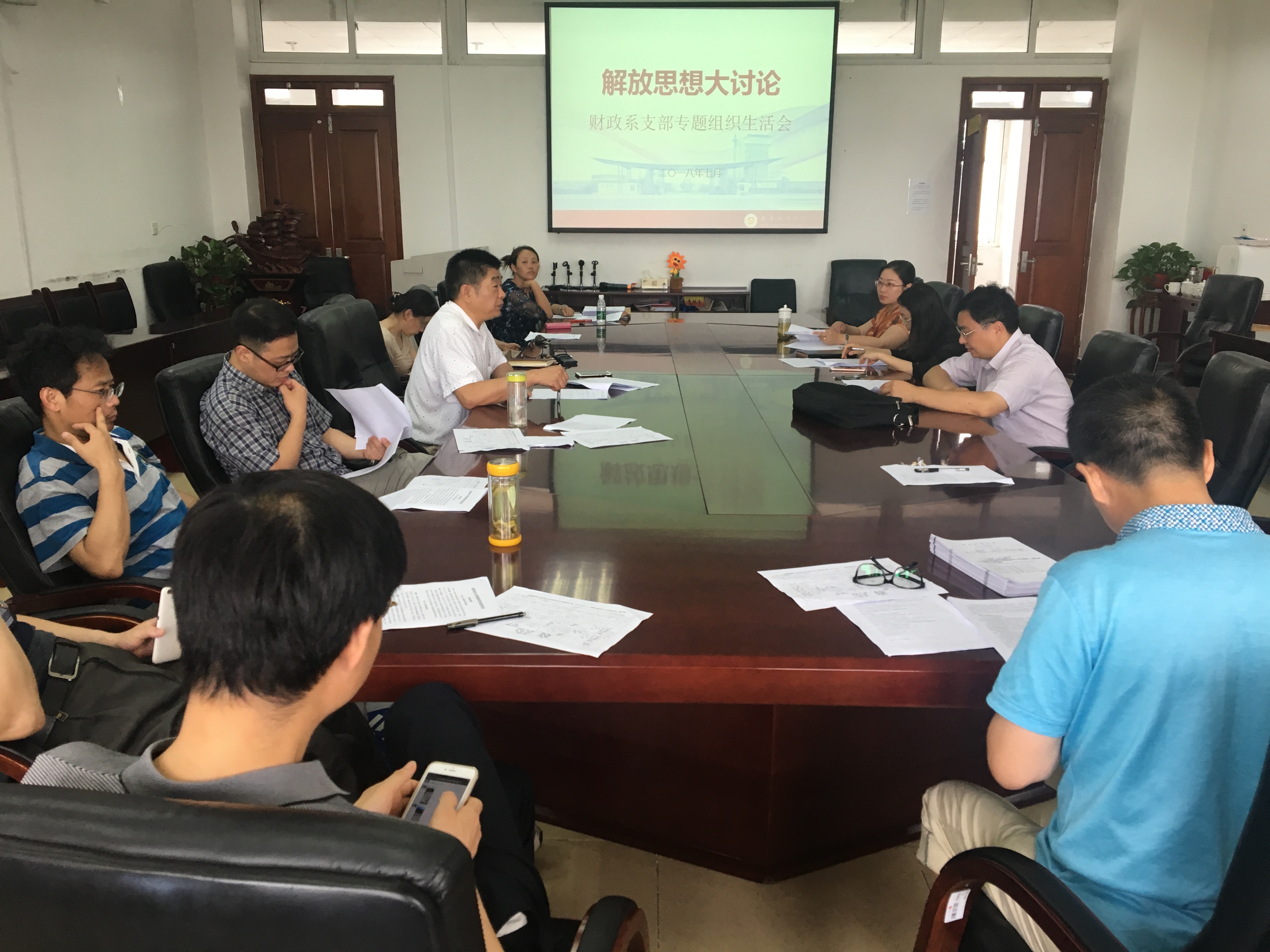 7月5日下午,我院财政系党支部、税收系党支部在德经楼408会议室、税收系办公室分别召开关于“进一步解放思想,激励新时代新担当新作为”专题组织生活会暨专题学习会。全体院领导、全体党员教师参加了所属支部的组织生活会。