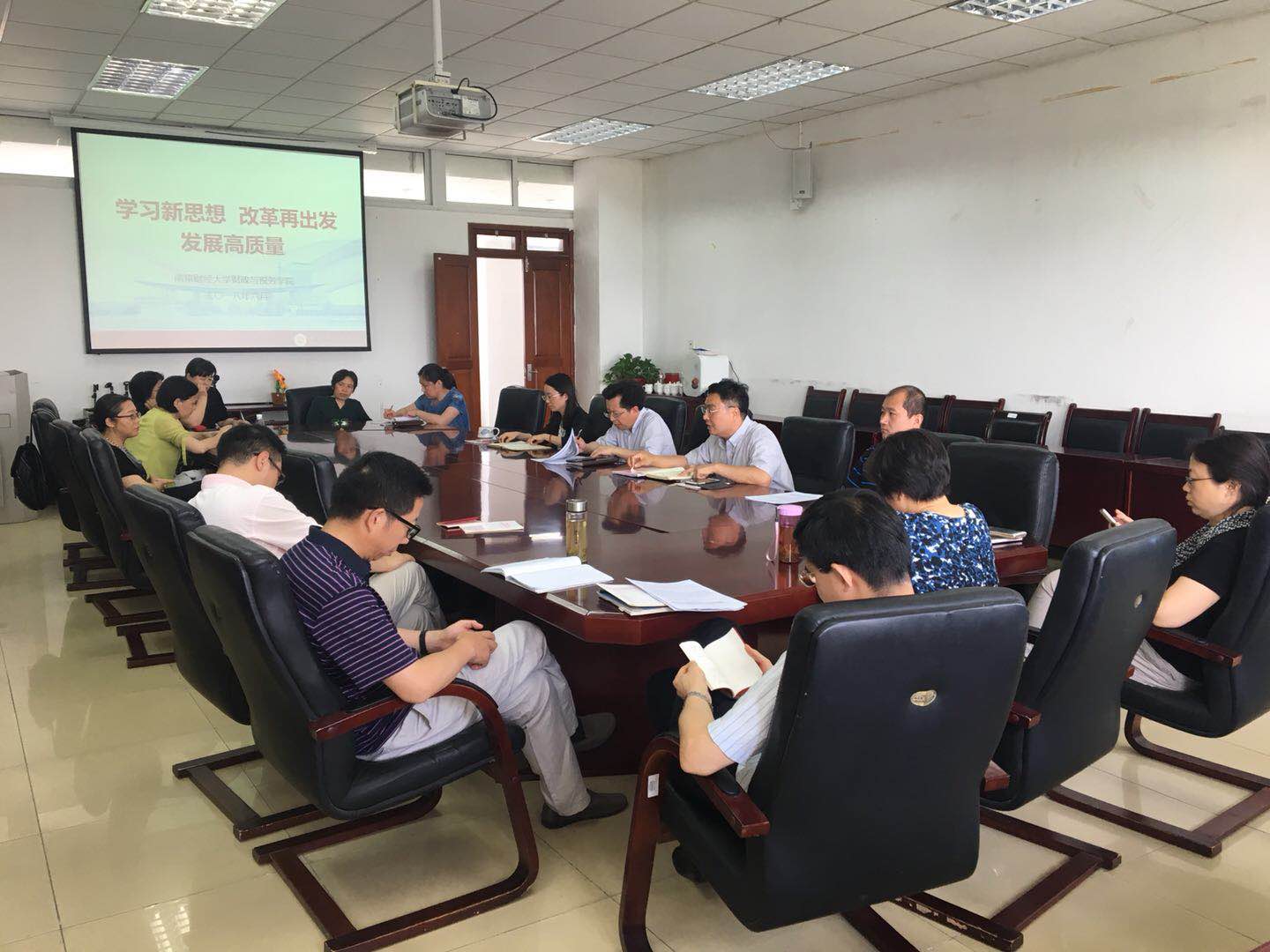 6月13日下午,我院在德经楼408会议室召开“学习新思想 改革再出发 发展高质量”专题学习及大讨论活动,院党委书记陈苏主持会议,学院党委班子全体成员及全体教职工参加会议。