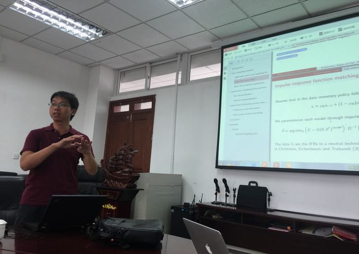 主讲人简介:赵军柱,2009年获得中央财经大学数量经济与金融实验班—经济学与数学双学位,2012年获得上海财经大学经济学硕士,2017年6月获得新加坡国立大学经济学博士学位。师从美国联邦储备银行委员会首席经济学家、高级研究员Martin Bodenstein。