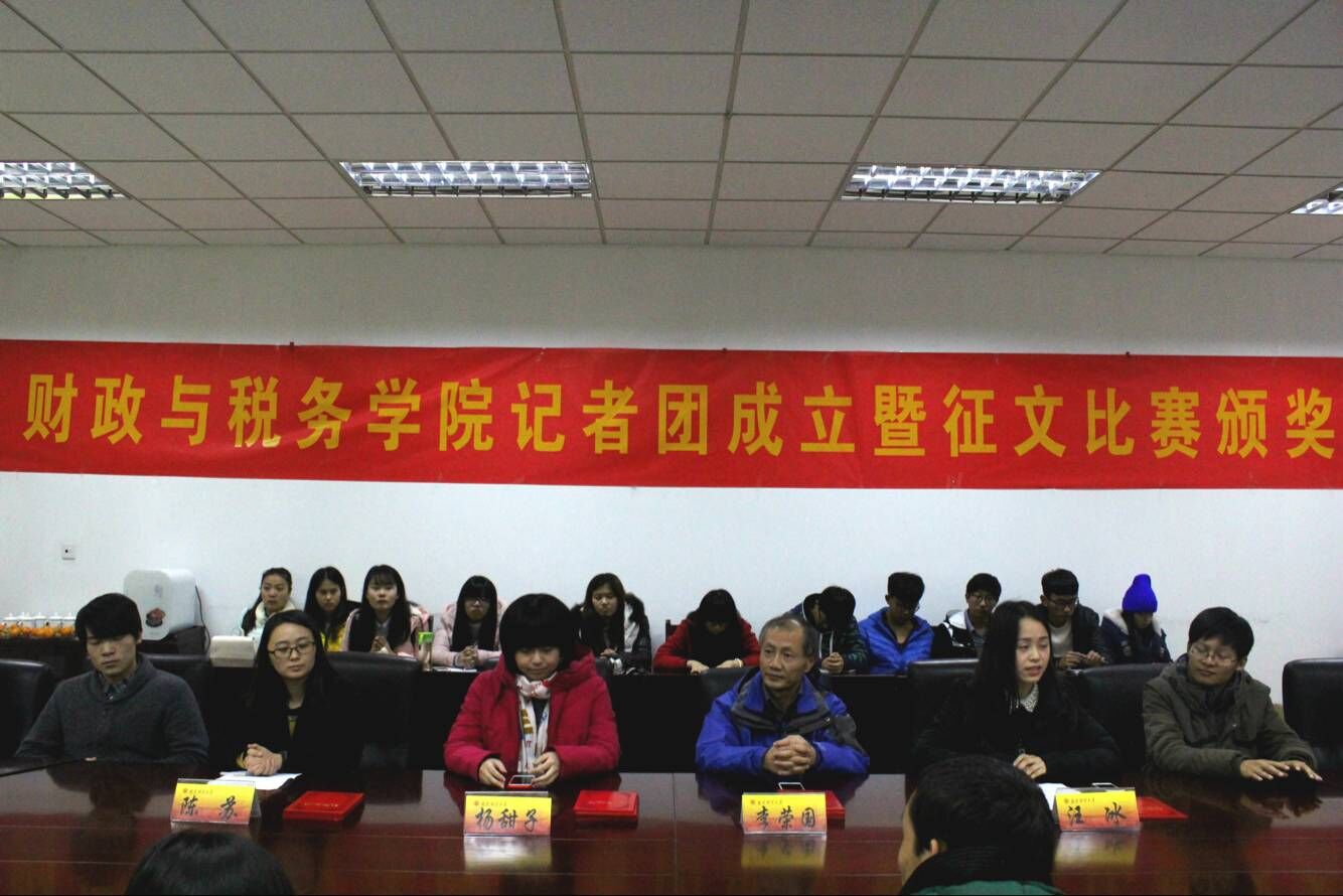2015年12月9日下午,bevitor伟德国际1946记者团成立暨征文比赛颁奖仪式在专一408会议室举行,《扬子晚报》科教卫部记者杨甜子老师、校宣传部李荣国老师、我院党委副书记陈苏老师出席仪式,仪式由学生会副主席汪冰主持。