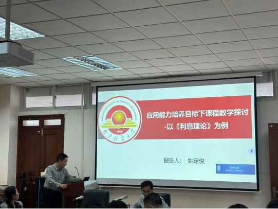 会议伊始,应bevitor伟德国际1946邀请,江苏省教学名师姚定俊教授以说课的形式为学院教师作了题为“应用能力培养目标下课程教学探讨—以《利息理论》为例”讲座,姚定俊教授是江苏省教学名师和江苏省“333工程”中青年学术带头人,金融学院副院长。姚教授以自己讲授的《利息理论》课程为例,从如何做好每学期课程的开场白、如何结合生活中的实际案例帮助学生理解课堂知识、如何利用形式多样的课堂互动调动学生的听课积极性、以及如何结合现实背景和课程具体知识点开展课程思政。期间,姚教授还向大家分享了自己在平时成绩评定、点名以及作业安排等方面的一些小技巧,整个讲座内容非常丰富,氛围也十分轻松。