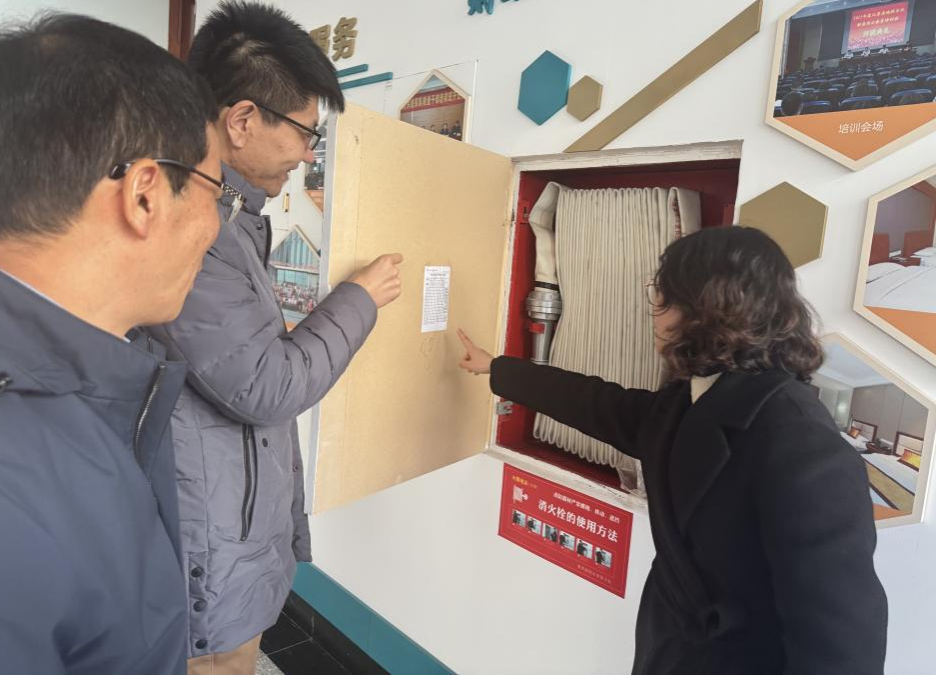 在德经楼4楼办公区,大家逐一检查消防设施设备的运行状况。同时,对办公区域的设备用电安全也进行了排查,检查电线是否存在老化、破损现象,插座是否牢固,避免因电气故障引发火灾隐患。