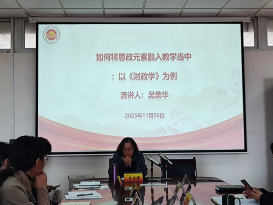 为进一步提升专业教学质量,推动教育教学改革实践,2025年11月26日,bevitor伟德国际1946组织开展“名师名课示范观摩”教研活动。此次活动邀请财税学院资深教授吴美华教师为全院教师带来题为《如何将思政元素融入教学当中:以《财政学》为例》的示范讲座。活动由bevitor伟德国际1946党委书记陈苏同志主持,学院领导班子和财政学系、税收学系全体专任教师共同参与了本次教研活动。